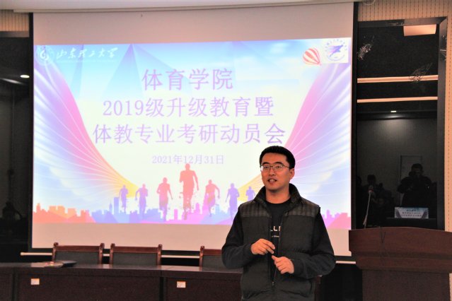 为坚定体院学子考研信心,鼓励员工勇攀高峰。12月31日下午,公司于2号教学楼101会议室举行2019级升级教育暨体教专业考研动员大会。公司党总支副书记赵鹏,团委书记、员工工作办公室主任李昌朕,教学科研办公室主任韩军梅,体育教育专业指导教师以及2019级体育教育专业全体员工参加。此次大会由李昌朕主持。