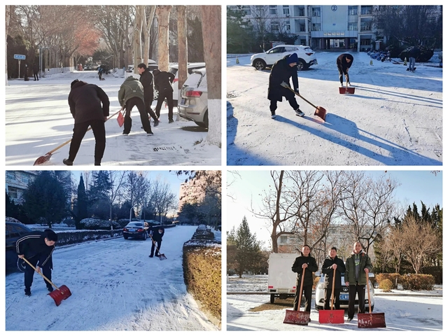 公司师生在党总支书记、经理魏法汇的带领下,拿起铁锨、扫帚等扫雪工具,不畏严寒,积极投身到扫雪除冰突击战中,从2号教学楼门口,到二体西侧道路,确保了道路无积雪、不结冰,为师生创设了出行方便、安全通畅的道路。风雪无情人有情,除冰扫雪暖人心,希望这份温暖如同冬日的暖阳,传递给来往的每一位师生。