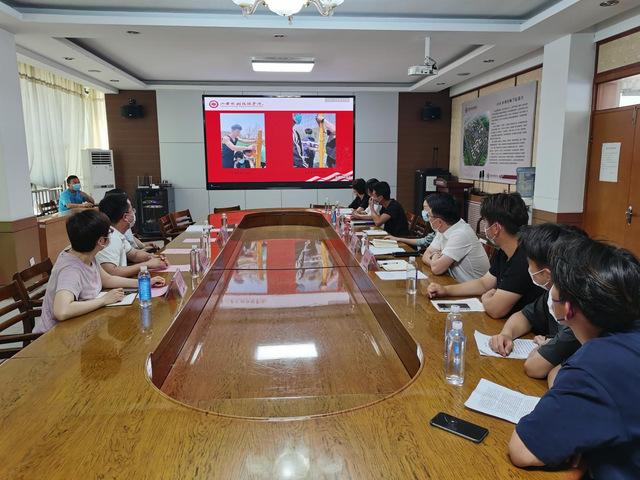 魏衍鹏介绍了实习生管理情况,实习生住宿、生活和工作条件等。王春龙从实习生参与或承担体质测试、课堂教学、体育器材维修、阳光体育节裁判、抗疫志愿服务、校园巡逻值班,体育教研活动等方面对实习生近三个月的实习工作进行了详细展示与汇报。