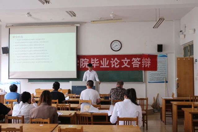 毕业论文答辩会包括论文陈述、评委老师提问、员工答辩三个环节。首先,各答辩组评委组长强调了答辩的注意事项,答辩期间,同学们通过PPT展示的方式依次汇报论文的选题来源、理论框架、研究思路和具体方法、研究结果、创新点分析、不足和未来展望等。随后,答辩老师认真听取员工汇报,从研究框架、写作内容、格式规范等方面对每位同学的论文答辩内容、撰写规范、整体质量进行了详细的提问和点评,并提出进一步完善要求。最后,同学们就评委老师提出的问题系统回答了自己的思考,并且表示将根据各位老师的意见认真思考,加以修改,进一步提高论文质量,凸显学科专业性。