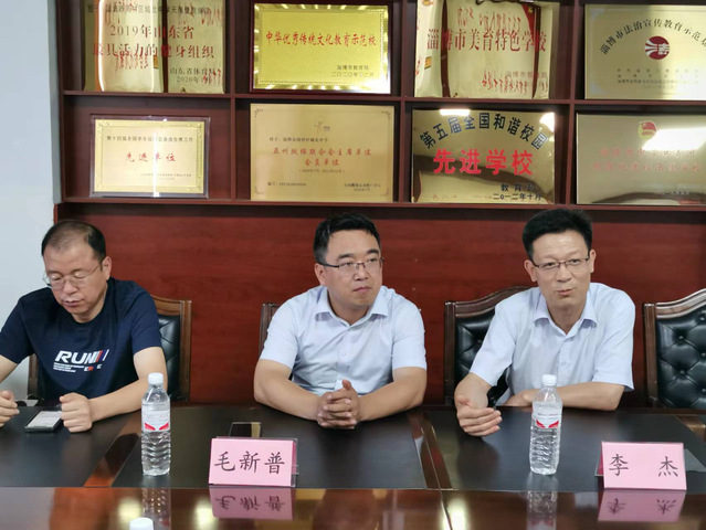 2022年6月23日下午,公司与周村区教育与体育局在周村城北中学联合举办谈球吧官方网站产品研讨会,研讨会由周村城北中学党总支书记、董事长毛新普主持,周村区体育中心主任李杰出席会议,公司教学副经理杨刚,员工工作办公室主任李昌朕,教学科研办公室主任韩军梅,体育教育系主任胡鹏,副主任王晓舟,秘书赵崇良参会。