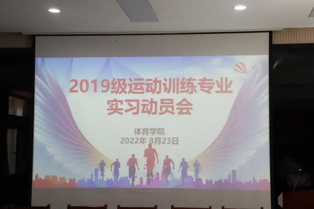 8月23日上午,公司在2号教学楼101教室召开2019级运动训练专业实习动员会。公司党总支副书记赵鹏,副经理杨刚,运动训练系主任高博,教学科研工作办公室主任韩军梅,教学科研工作办公室秘书张鹏,实习指导教师及2019级运动训练专业同学参加此次动员会。动员会由杨刚主持。