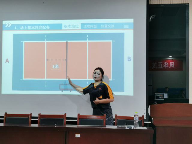 刘云午、王宪、孙粼婧三位青年教师分别以“动力链中的肩”“乒乓球发球规则讲析”“中二三进攻阵型”为主题进行20分钟的课堂教学展示。