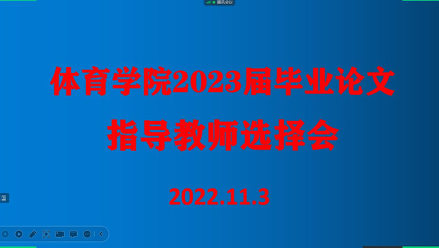 11月3日,公司举行2023届毕业论文指导教师线上选择会。会议采用腾讯会议方式进行,2019级体育教育、运动训练专业共239名员工参加会议,会议由教学科研办公室主任韩军梅主持,教学秘书张鹏协助组织。