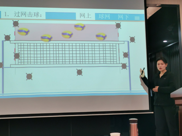 刘云午、孙粼婧两位老师分别以“引体向上的解剖学基础及训练方案”“拦网”为主题进行20分钟的课堂教学展示,并接着进行教学反思。