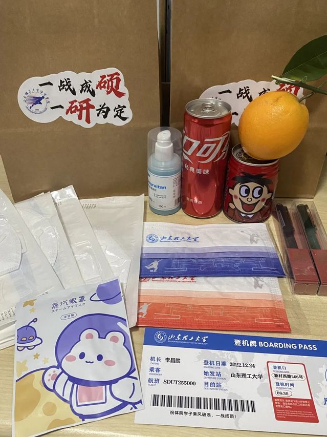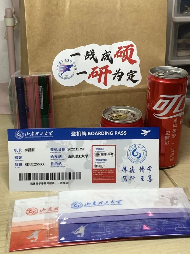 一张精心制作的“登机牌”,寓意着成功上岸,前往考研学子梦想盛开的地方。精心准备的大礼包承载着公司对考研学子的美好祝愿,祝愿所有考研学习今日一“研”为定,明日必为“研”一。
