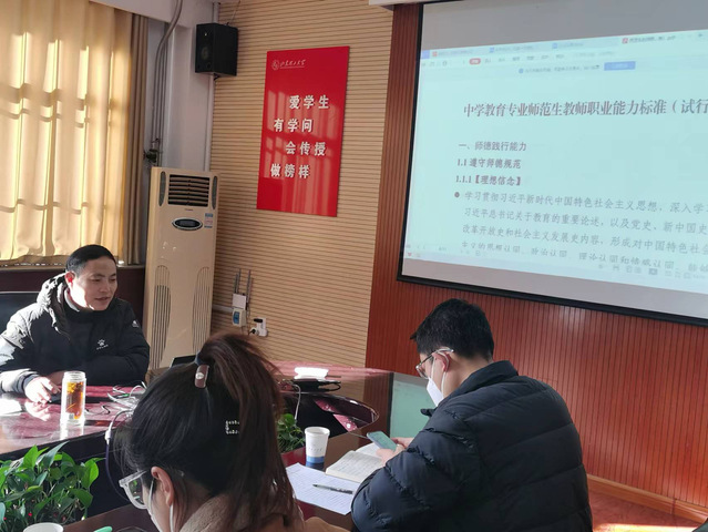 与会教师学习了《教育部关于推进师范生免试认定中小学教团队格改革的通知》(教师函〔2022〕1 号)、《谈球吧师范生免试认定中小学教团队格公司产品能力考核实施办法》的通知(鲁理工大办发〔2022〕9 号)、《中学教育专业师范生教师职业能力标准(试行)》(教师厅〔2021〕2 号)、公司《关于2023年师范生免试认定改革工作的第一次通知》等相关文件。教师教育公司经理郑兆青进一步解读文件精神,与会教师进行研讨与交流。