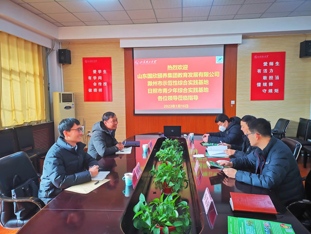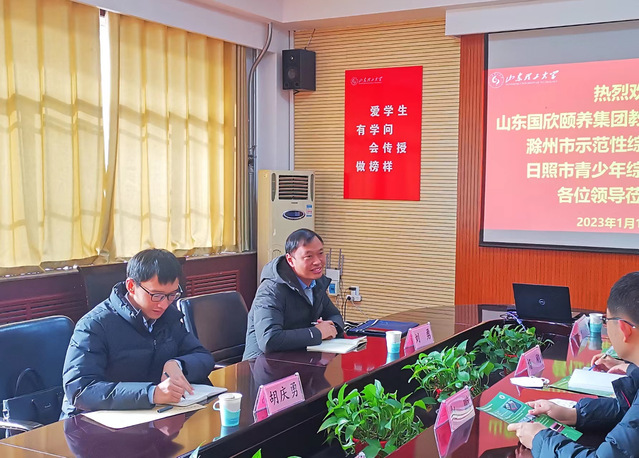 1月16日上午,山东健康集团教育发展有限公司滁州市示范性综合实践基地主任刘勇,日照市莒县青少年综合实践基地主任胡庆勇一行来公司洽谈校企合作事宜。公司党总支副书记赵鹏,副经理杨刚,院团委书记、学工办主任李昌朕,运动系主任高博参加座谈交流。