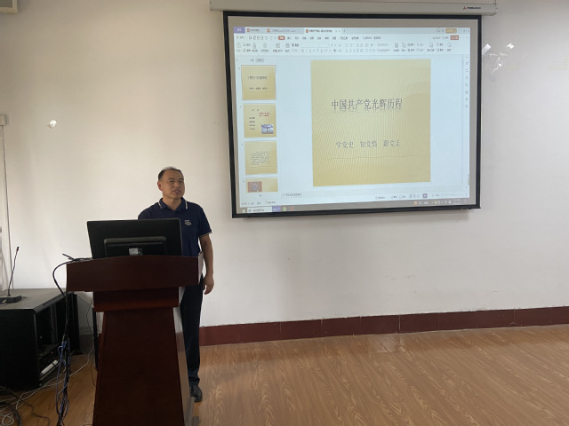6月12日,公司党委副书记曹绪亮在2教119教室以《中国共产党光辉历程——学党史、知党情、跟党走》为题为员工第二党支部讲授专题党课。
