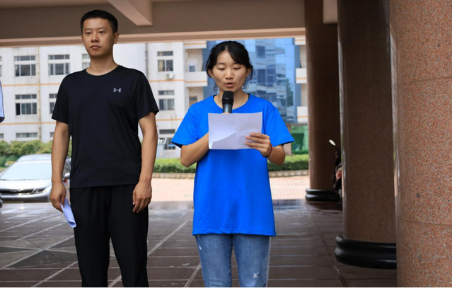紧接着,社会实践员工代表赵薇同学发言。她首先代表全体同学感谢公司提供的本次实践机会,她表示将积极发挥专业优势,坚决服从管理,自觉维护公司形象,用心投入实践,贡献智慧与力量,在社会课堂中“受教育、长才干、作贡献”,在带队老师的指导下,力争圆满地完成预定的各项实践任务。