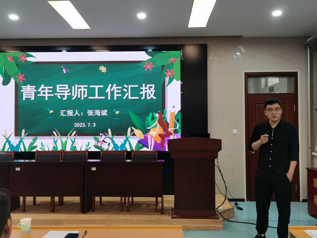 张海斌、胡鹏、王晓舟、郭涛等四位导师依次分享了对新教师培养的规划、做法和效果。