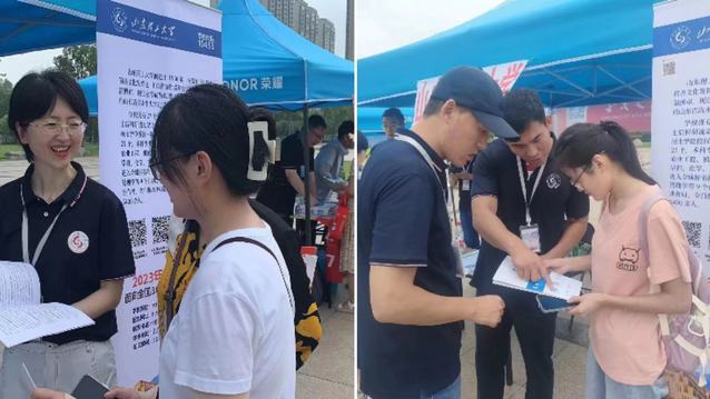 6月28日-30日,由副经理杨刚带领的招生工作组赴临沂开展招生宣传工作,先后在莒南县、沂南县、沂水县参加了现场招生宣传活动,为考生和家长提供了一站式的讲解、答疑和指导服务,搭建了考生与拟报考院系之间沟通的桥梁。在活动现场气氛热烈,前来咨询的考生和家长络绎不绝,通过面对面的交流,工作组详细解答了考生和家长的咨询,并结合今年淄博在网络上的爆火,变劣势为优势,向考生和家长讲解了报考公司的“高性价比”。