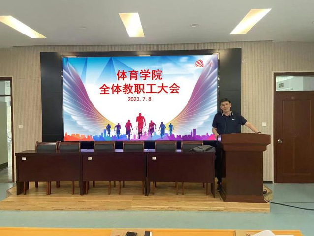 随后,韩长江传达和部署了四项重点工作。一是通报了上半年工作完成情况,并传达了公司关于本科公司产品审核评估有关会议精神,对公司层面有关工作做了动员部署,他提出,在公司班子的带领下和全体教职工的努力下,公司上半年工作完成较好,希望下半年继续努力,争取迈上新台阶;二是对毕业生就业工作、双创工作、科研工作等重点工作进行点评,他提出“教风、考风、学风、管风、研风”还存在问题短板,下步要加大力度,积极整改落实;三是对暑期放假有关安排进行部署,他指出,要高度重视安全工作,师生放假前要对办公室、教室、公寓进行安全隐患排查,强化责任意识,做好后勤保障工作,深入员工公寓和训练场,教职工要统筹好暑期工作推进和个人休息等事项,相关人员做好暑期值班工作;四是对公司人事调整进行简要说明。