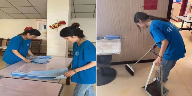 百善德为本,敬老孝当先,打扫卫生也是一种尽孝的方式。我们由负责人组织为老年宿舍打扫卫生,包括拖地、擦桌子、叠老人们的毛巾、规划垃圾存放位置等,避免卫生隐患的同时,又为老人的住所提供了安全、卫生、温馨的服务以宽老人心、养老人身。
