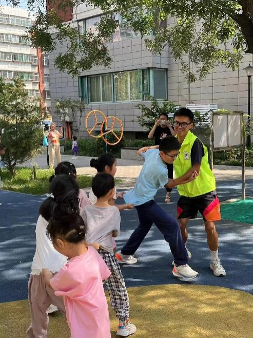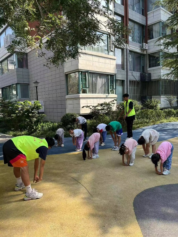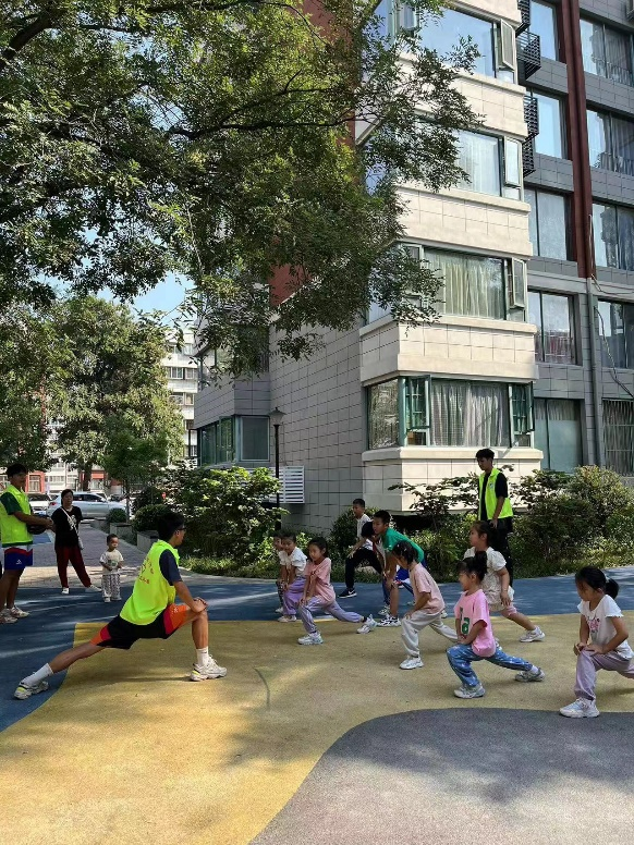 公益课堂活动开始前,志愿者带领孩子们进行热身活动,确保活动安全性,避免运动受伤。