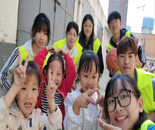 志愿者们利用所学的专业知识,为社区孩子们讲解篮球的基础动作,开展趣味篮球课活动,学习“低运球”、“变向运球”“接力运球”等多种动作。