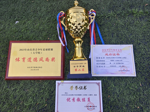 2023年山东省青少年足球联赛(大学组)于10月15日-20日在潍坊市山东鲁能足球公司举行,公司男子(校园组)足球队在主教练郭涛,助理教练于铭浩的带领下经过7天比赛的激烈角逐,从小组突出重围,进入四强,最终获得山东省老员工足球联赛(校园组)第四名,公司女子足球队在教练袁辉明、聂超的带领下经过5天的激烈角逐,最终取得优异成绩,在女子(高水平组)中荣获第二名,获得体育道德风尚奖,建筑工程与空间信息公司阿卜杜黑力力·阿不力米提和外国语公司张中禹被评为“优秀运动员”,于铭浩、聂超荣获优秀教练员称号。