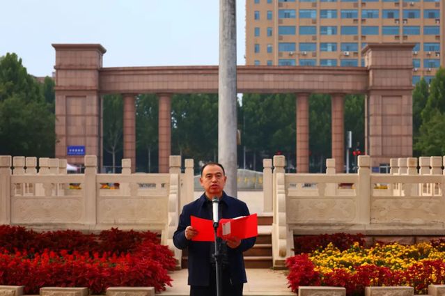 随后,曹绪亮在国旗下讲话,他指出:“当代中国青年生逢其时,施展才干与梦想的的舞台无比广阔,作为新时代体育人要认真学、努力练,让理论与实践相结合,为国家贡献青春力量。我们要坚定不移听党话、跟党走,感党恩,激励同学们既要仰望星空,又要脚踏实地,要牢记为国争光、无私奉献、科学求实、团结协作、顽强拼搏的中华体育精神,在强国建设的不懈奋斗中书写人生华章。”