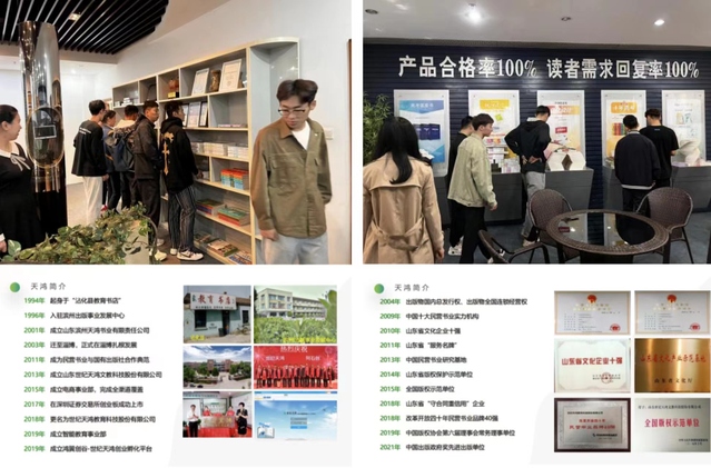 世纪天鸿董事、鸿翼教育总经理张学军热情接待了公司师生,在世纪天鸿人力行政总监杨洁、世纪天鸿招聘主管张青的带领下参观了公司企业文化墙、产品展厅。世纪天鸿教育科技股份有限公司成立于2004年,2017年9月26日在深圳证券交易所创业板正式挂牌上市,股票简称为“世纪天鸿”(股票代码为300654),是全国首家在A股上市的民营教育出版企业。世纪天鸿主营小初高教育图书策划发行、教育信息化产品研发、教育服务提供,成功打造了以“志鸿优化”为代表的国内教辅图书知名品牌,产品已覆盖我国30多个省市自治区,惠及数亿师生。公司师生近距离感受到了企业氛围,深入了解了世纪天鸿教育科技股份有限公司的发展历程和企业文化。