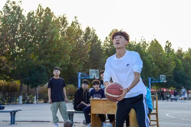 一分钟自投自抢也是篮球基本功的重要组成部分,看似距离不远的框框,要准确无误投进去是不容易的。有的篮球“剑走偏锋”一头撞上边框弹飞,有的篮球直接原地起飞自上而下飞入框中,千奇百怪的动作和投球效果惹得观战同学爆笑不止,但是依旧没有阻止各班选手们大发神威的热情,卯足了劲争当神投手!
