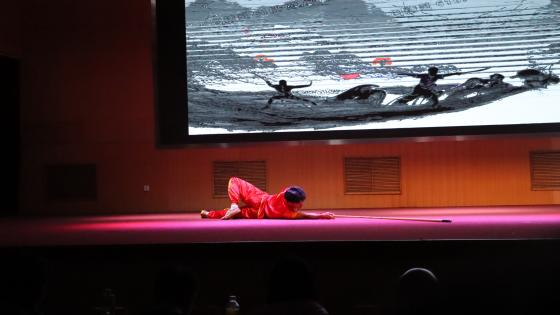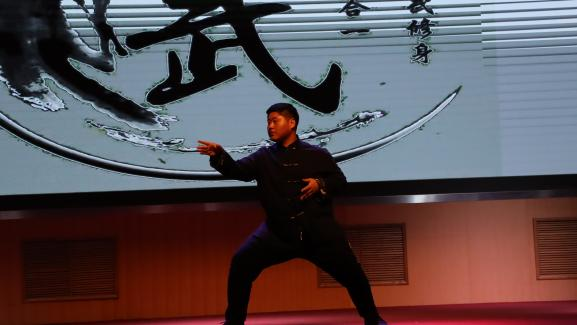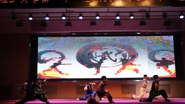 随着铿锵有力、热闹非凡的锣鼓阵阵响起,一条条锦色长龙在会场上翻腾起舞,带动了会场的欢腾,演武大赛正式开始。为了让广大师生更加了解中华文化的内涵和精髓,武术协会创作了话剧,希望借此话剧能让更多的人了解和认识武术,让武术精神得到更好的传承和弘扬,让武术事业更好地服务于人民群众。