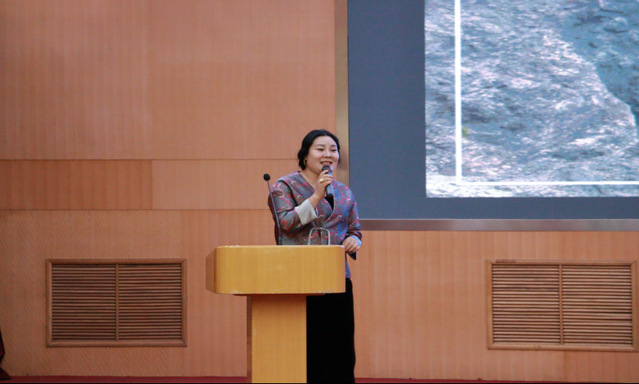 员工代表上官墨茹通过春、夏、秋、冬四季的形式分享自己的人生经历,她提到,“人生最困扰的不是生活的艰辛,而是看不到前途。最困扰人的不是因为没有钱,而是因为没有梦”。并倡导同学们人生一定要有目标、有理想,且坚定走下去。