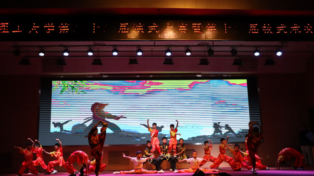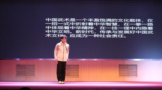 随着铿锵有力、热闹非凡的锣鼓阵阵响起,一条条锦色长龙在会场上翻腾起舞,带动了会场的欢腾,演武大赛正式开始。为了让广大师生更加了解中华文化的内涵和精髓,武术协会创作了话剧,希望借此话剧能让更多的人了解和认识武术,让武术精神得到更好的传承和弘扬,让武术事业更好地服务于人民群众。