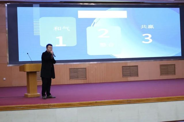 员工代表王均平以“选择的重要性”为题结合自己的创业经历指导同学们在大学中应该认真规划学习路线,找到属于自己的路,确定人生方向。