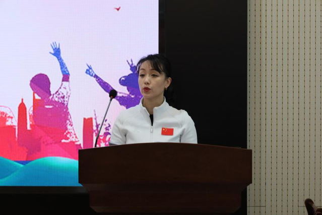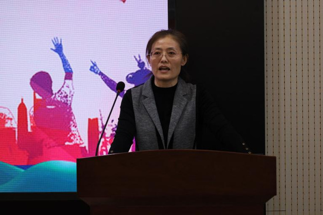 王丹介绍此次大赛规程,她希望同学们以饱满的热情迎接此次比赛,展现出自己的实力与风采,取得优异的成绩,并预祝此次基本功大赛圆满成功。