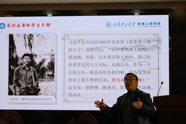 随后蒲业壮与同学们进行亲切交流并讲述自己的成长经历,结合自身经历来勉励同学们如何做一名合格的员工干部。蒲业壮将内容分为了三部分: