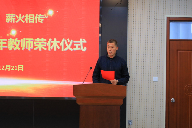 郭涛向8位荣休教师表示诚挚的感谢与美好的祝福,他提到,希望年轻教师们以老教师为榜样,不负韶华,以梦为马,践行爱岗敬业,强化责任担当,不断提升自身专业素养与综合能力,祝愿荣休教师享受天伦之乐,感受生活的美好,在回忆起过去的岁月时感到自豪与满足。