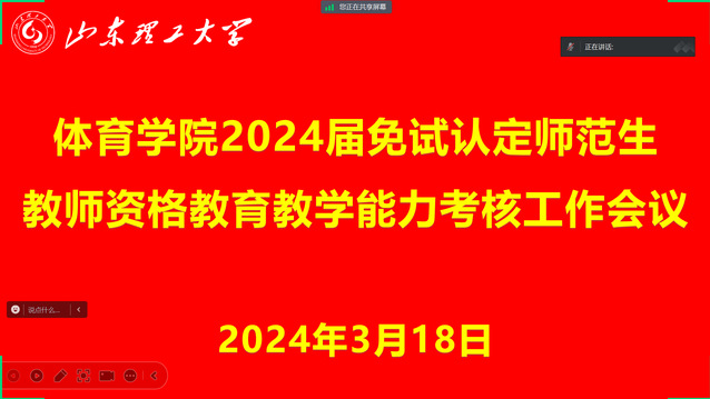 会上,韩军梅传达了《谈球吧师范生免试认定中小学教团队格公司产品能力考核实施办法》(鲁理工大办发〔2022〕9 号)和《关于做好2024届免试认定师范生公司产品能力考核工作的通知》(教师教育函〔2024〕11号)文件精神,对《谈球吧官方网站2024届免试认定师范生教团队格公司产品能力考核工作方案》进行详细解读,明确此项工作报名条件、考核内容及注意事项、时间安排等。