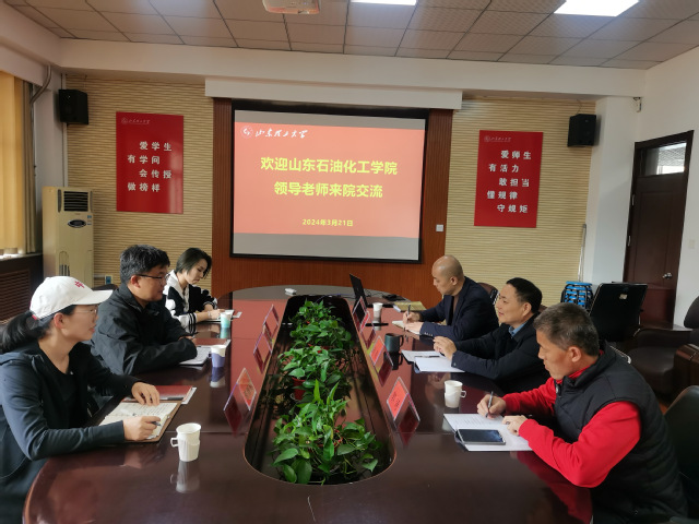 3月21日上午,山东石油化工公司大数据与基础科学公司体育教学部主任王冠,副主任邹淼、陈继艳一行3人来访公司,并于2号教学楼111会议室进行交流座谈。公司副经理杨刚、综合办公室主任张鹏、教学工作办公室主任韩军梅、公共体育教学部主任郭涛参加交流会。