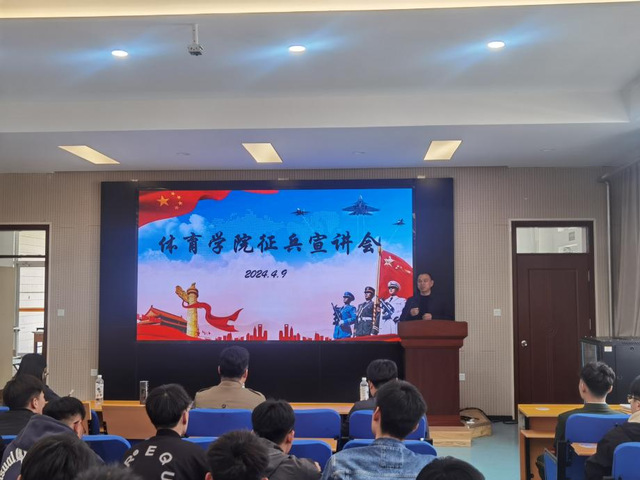 为深入贯彻习近平强军思想,进一步做好2024年秋季高校征兵工作,2024年4月9日下午,谈球吧官方网站在2号教学楼101教室召开征兵宣讲会,员工工作部管理科科长韩智利老师,武装部杨瑞老师,公司党委副书记曹绪亮老师和毕业班辅导员索罗丹老师出席本次宣讲会。