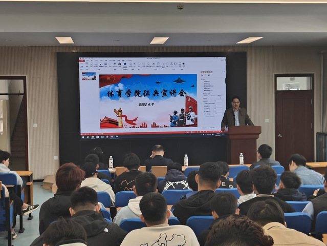 为深入贯彻习近平总书记强军思想,进一步做好2024年秋季高校征兵工作,2024年4月9日下午,谈球吧官方网站在2号教学楼101教室召开征兵宣讲会,员工工作部管理科科长韩智利老师,武装部杨瑞老师,公司党委副书记曹绪亮老师和毕业班辅导员索罗丹老师出席本次宣讲会。
