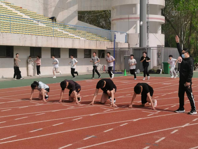 4月13日,参赛选手进行专业技能测试,包括田径100米跑、排球定位发球、足球定位球射门、篮球半场运球上篮、武术初级长拳和初级刀、体操技巧和双杠等六个项目。各项目评委老师依据比赛评分标准和参赛选手的比赛表现进行评分。
