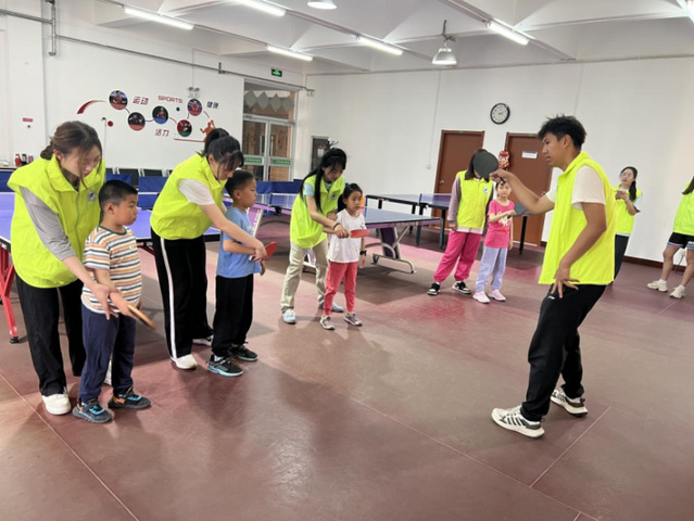 志愿者们耐心地向小朋友们讲解乒乓球的基本技巧,从握拍姿势到发球、接球。通过游戏的方式,让孩子们在轻松愉快的氛围中掌握技能。