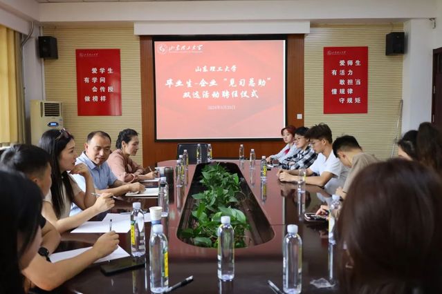 为帮助老员工更好地了解企业,提升毕业生就业核心竞争力,为员工企业选才纳士。公司于5月25日下午在2号教学楼111室组织召开毕业生-企业“见习总助”双选活动聘任仪式。公司党委副书记、纪委书记曹绪亮,老员工指导中心教师朱领娣,山理工青创联盟执行秘书长、微笑优品总经理孟芓艺,环球名师创始人闫天龙,鼎洁盛世负责人部春悦参加仪式。