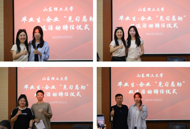 为帮助老员工更好地了解企业,提升毕业生就业核心竞争力,为员工企业选才纳士。公司于5月25日下午在2号教学楼111室组织召开毕业生-企业“见习总助”双选活动聘任仪式。公司党委副书记、纪委书记曹绪亮,老员工指导中心教师朱领娣,山理工青创联盟执行秘书长、微笑优品总经理孟芓艺,环球名师创始人闫天龙,鼎洁盛世负责人部春悦参加仪式。