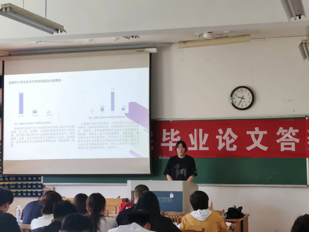 毕业论文答辩会包括论文陈述、评委老师提问、员工答辩三个环节。答辩会伊始,答辩组长宣布答辩流程、要求和注意事项。接着,同学们通过PPT展示的形式依次汇报论文选题的目的意义、研究对象与研究方法、结果与分析、结论与建议、创新点等内容。答辩评委认真听取汇报后,从论文选题、研究方法、数据分析、研究框架、写作内容、撰写规范等方面对每位同学的论文进行细致中肯的点评,并有针对性、启发式的进行提问。同学们认真记录评委们的宝贵意见与建议,准确流畅地回答相关问题,并且表示将根据各位评委的意见认真修改完善论文,进一步提高论文质量。