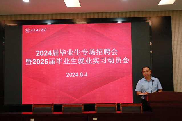 6月4日下午,公司于2教101会议室召开2024届毕业生专场招聘会暨2025届毕业生就业实习动员会,公司党委副书记、纪委书记曹绪亮,实习指导教师,邀请到13家实习用人单位负责人参加会议。
