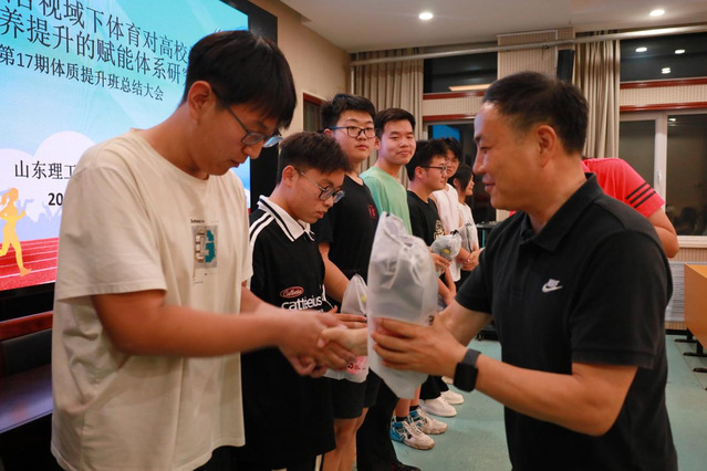 杨刚作总结发言,他表示,通过自身的努力,体质提升班的同学们普遍减重20-30公斤,部分员工体测成绩达到《国家员工体质健康标准》,老师们深感欣慰。生命在于运动,身体是革命的本钱,体育锻炼是增强抵抗力、预防疾病的最好方法,更是一种积极性休息的方式,能够消除大脑疲劳,提高学习效率。随后,他就接下来继续开展体质提升提到了几点建议:一、充分利用课余时间,加强体育锻炼,提高自身的抵抗力和免疫力;二、以积极的心态面对体育课,充分利用课上时间,在老师的指导下,进行科学体育锻炼;三、安排好自己的作息时间,从根本上树立一种加强体育锻炼塑造健康体魄的意识;四、合理膳食,保证多种营养元素的吸收;五、劳逸结合,预防疲劳。