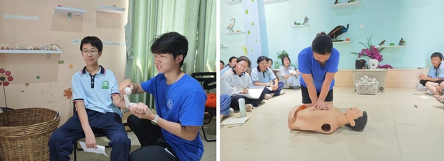 在攀岩课程中,团队成员对专业运动知识进行了讲解,结合课本知识进行受力分析,辅助同学们进行自主攀岩体验,并在旁做好安全保护措施。