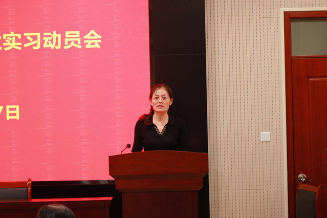 韩军梅对2021级实习计划安排做了详细的说明,宣布实习指导教师具体分组,对各实践单位进行介绍,对实习材料撰写要求进行详细说明,同学们认真倾听,并做好记录。