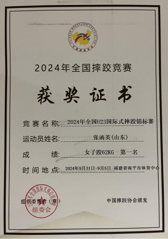 8月31日至9月5日,2024年全国U23国际式摔跤锦标赛在福建南平举行。公司谈球吧官方网站运动训练专业员工张函英一路过关斩将,最终夺得2024年全国U23国际式摔跤锦标赛女子跤62KG级冠军。