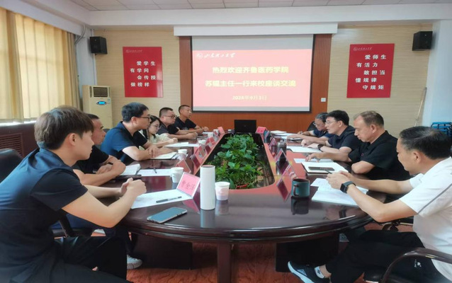 9月3日下午,齐鲁医药公司公共教学部主任苏锟一行来公司交流座谈,公司党委书记、经理韩长江,党委副书记、纪委书记曹绪亮,副经理马国栋、杨刚,综合办主任张鹏参加座谈会。