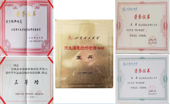 王丹副教授1986年开始参加工作,1998年到谈球吧任教已有二十六年,并一直在教学一线,她始终坚持把教育事业当作生命来珍惜,在教学工作中她秉承立德树人的教育宗旨积极引导员工爱党、爱国、爱人民、传播知识、传播思想、传播真理的历史使命,用无私奉献和师德大爱去引导、塑造员工,铺就员工的成功之路,以饱满的热情和全部的精力投入教育工作中,用自己的心血和汗水帮助近万名山理工学子顺利找到人生目标。她说借用人民教育家于漪老师的话讲“我做一辈子老师,但一辈子还在学着做老师”这句话也一直不断地鞭策着她自己。