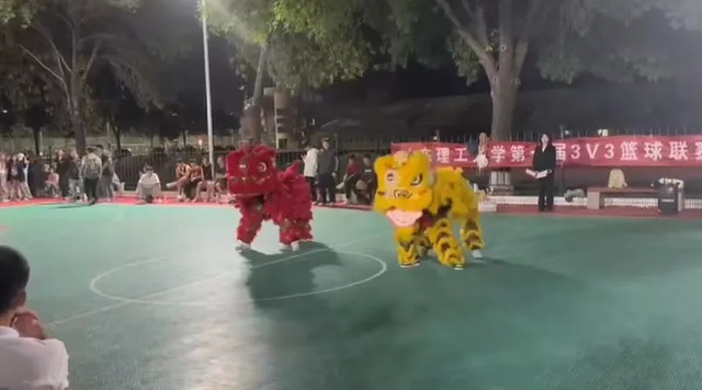 比赛正式开始前,龙狮运动协会成员们身着绚丽的舞龙服装,操掌着栩栩如生的龙狮,在星光下翻飞腾挪,为在场的师生们带来了一场视觉盛宴。