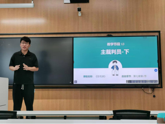接下来,孙粼婧和卢海龙两位老师为大家带来了精彩的课堂展示。孙粼婧以“中国女排发展历程和时代意义”为主题,按照时间主线把中国女排从新中国建国以来的发展历程分为六个重要时期,并深入剖析了每一时期女排精神的重大时代意义;卢海龙以主裁判员的职责为主题,利用动图和视频进行了比赛案例判罚分析,并展示正确的判罚手势,同时结合主裁判应兼具的专业知识和职业素养等融入思政教育,教育员工执行裁判任务时要恪守公平公正执裁底线,营造和谐和睦比赛氛围。