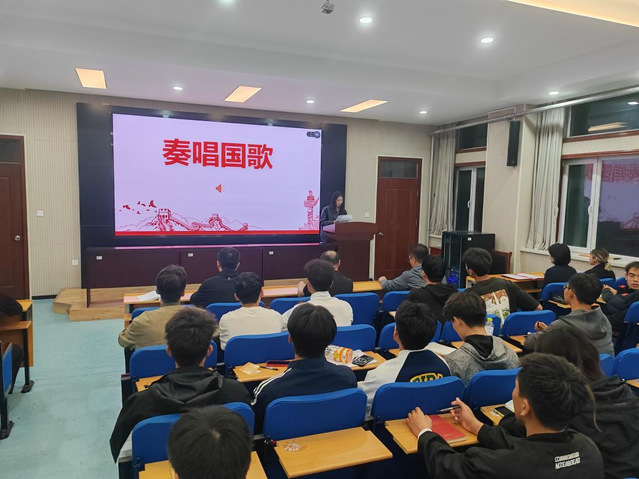 会议伊始,全体起立,奏唱国歌。